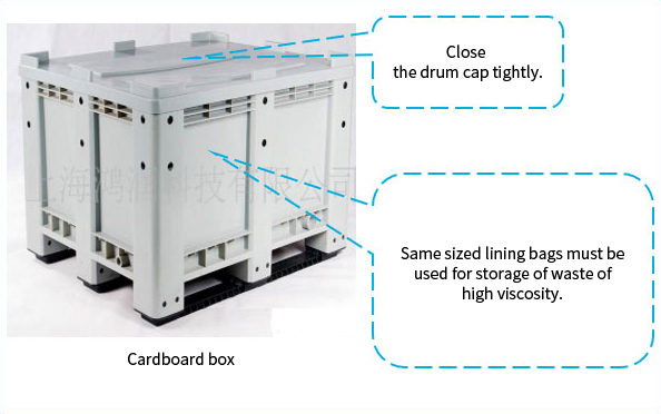 IBC ton drum: store liquid waste with good fluidity. It is not suitable for storing liquid waste which has low flash point (<65 ℃), is easy to polymerize or contains solid particles; and it is not suitable for storing solid waste.